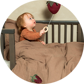 Pour les plus petits bébés, il existe à la fois des carrés de mousseline, des doudous et des chaînes de tétines ainsi que le tout premier set de dîner. Vous pouvez composer votre propre set d'assiettes avec des couvert assortis ainsi que des tasses et mug.