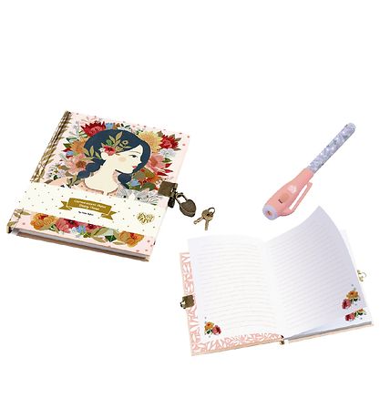 Djeco se ferme par un cadenas pour que tous vos secrets ne soient visibles que par vous. Un stylo magique est inclus, qui peut écrire avec une encre invisible qui ne peut être vue que lorsque vous éclairez l'encre invisible avec la lumière du stylo.