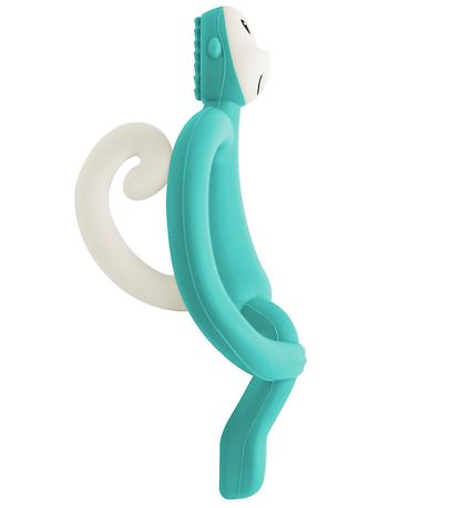 anneau de dentition Smart Matchstick Monkey de couleur verte, en forme de singe avec un visage et une queue blancs.