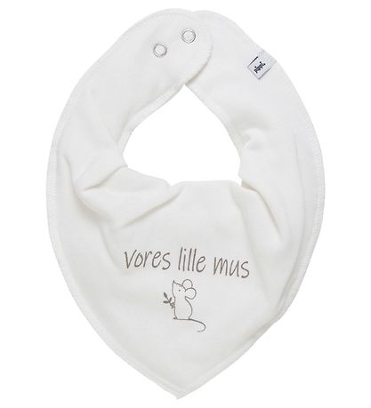 bavoir bandana Smart Pippi en blanc, avec "Notre petit souris" et une souris sur le devant, en bas.