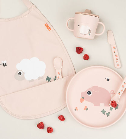 Joli bavoir Done by Deer en rose clair avec un imprimé mouton.