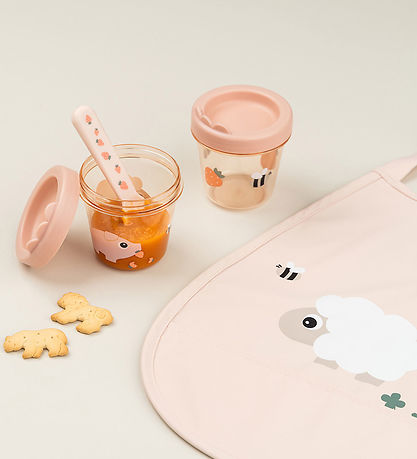 Les Done by Deer sont allongés et possèdent un élastique rose au niveau du cou. Il y a une poche pratique à l'avant qui permet de recueillir de la nourriture et des boissons. Le Bavoir est doté d'un revêtement en polyuréthane, ce qui le rend imperméable et facile à nettoyer avec un chiffon humide. Il peut être lavé en machine à laver à 30 degrés.
