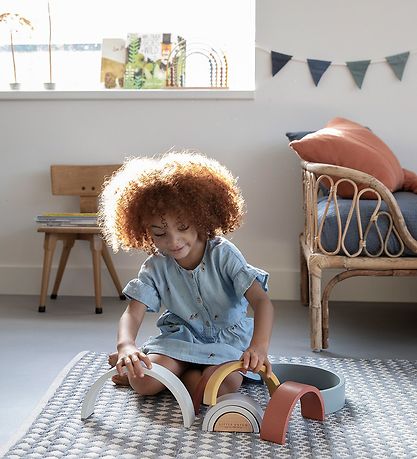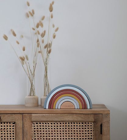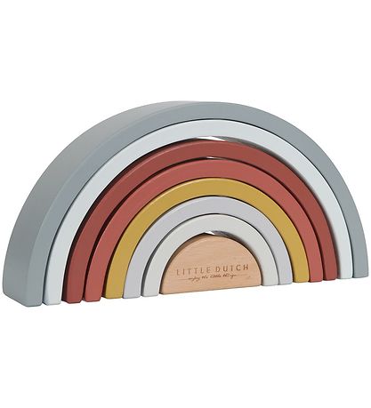 Little Dutch est en bois et est idéal pour les petits qui développent leur motricité et leur sens logique. Les 8 parties peuvent être empilées pour former un arc-en-ciel, mais elles peuvent aussi être empilées de nombreuses autres façons. Lorsqu'il n'est pas utilisé comme jouet, l'arc-en-ciel est également un élément décoratif dans la chambre des enfants.