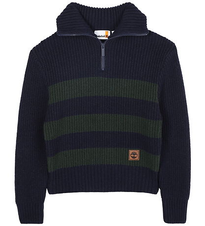 blouse Timberland Smart, d'un bleu marine profond à larges a rayures vert foncé. Chemisier structure côtelée lui confère un look classique. Il est doté d'un col montant zippé jusqu'à la poitrine. Le bas est orné d'une application du logo Timberland, soulignant subtilement le caractère de la marque. Le bord côtelé des manches assure un bon ajustement.