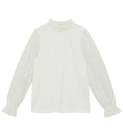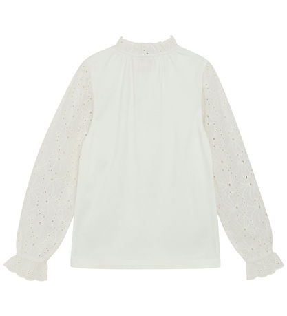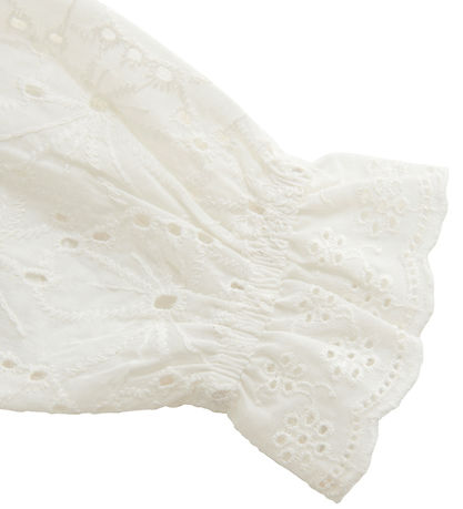 Élégant blouse Creamie dans un blanc classique. Chemisier manches longues sont rehaussées de broderies détaillées qui lui confèrent une allure sophistiquée. Son encolure haute et ajustée est rehaussée d'une bordure élastique et d'une dentelle délicate. Le chemisier Creamie allie élégance et couleurs intemporelles.
