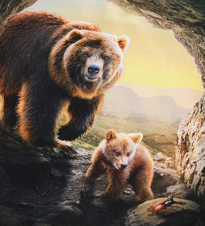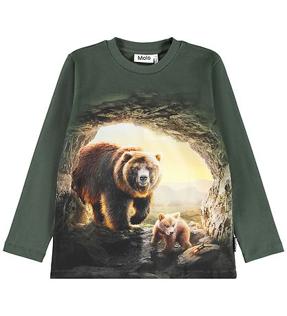 Magnifique blouse Molo vert foncé orné d'un grand imprimé sur le devant représentant deux adorables ours et un motif nature. Chemisier présente une encolure tour avec un bord côtelé fin et des manches longues.
