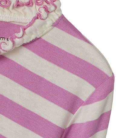 Élégant blouse Name It à a rayures roses et crème, orné de volants décoratifs le long de l'encolure et des manches, pour une touche décorative subtile. Chemisier est doté d'une fermeture bouton et élastique au-dessus de l'encolure goutte d'eau.