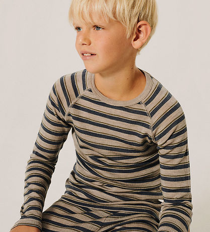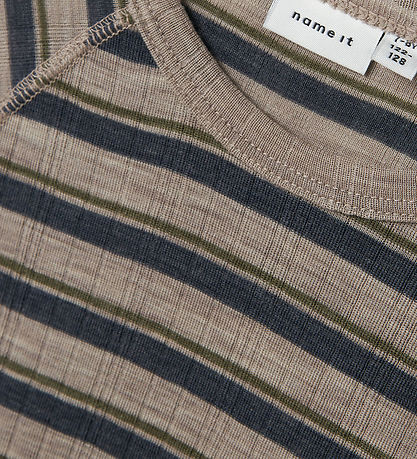 Élégant blouse Name It à manches longues. Ce Chemisier arbore un motif rayé classique dans des tons gris et bleu foncé. Son encolure tour et sa structure côtelée douce lui confèrent une touche d'élégance.