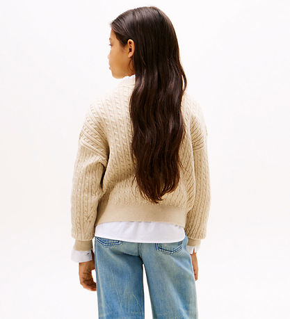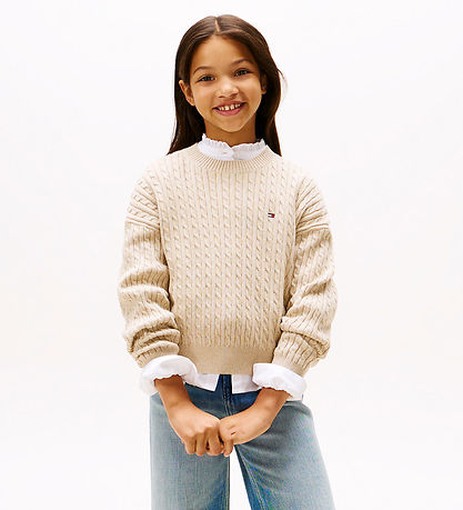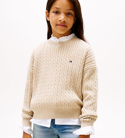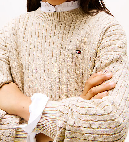 Élégant blouse Tommy Hilfiger, décliné dans un beige chiné, Chemisier présente une belle structure en maille à motif torsadé qui lui confère un look intemporel. Un petit logo Tommy Hilfiger discret orne le devant, apportant une touche subtile à l'ensemble.