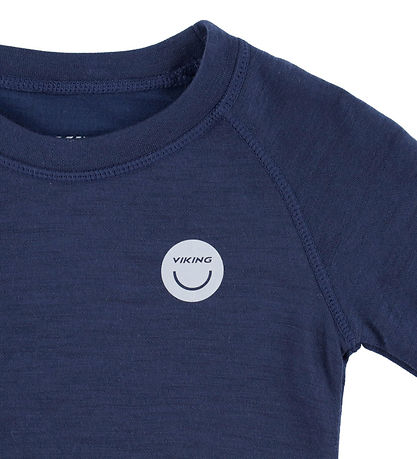 blouse Viking pratique, bleu marine foncé, imprimé logo discret sur le devant. Chemisier longues et encolure étroite. La qualité de la viscose de bambou et de la laine mérinos chemisier confère douceur et maintient la température corporelle.