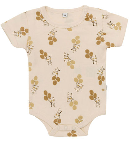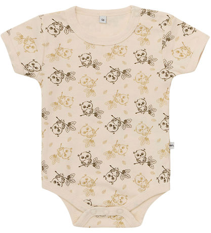 - Blanc cassé avec imprimé complet de hiboux en marron et beige