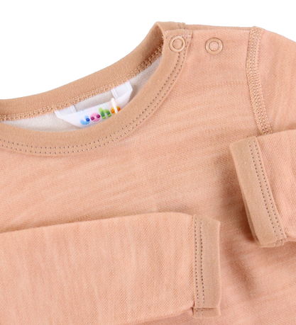 Le justaucorps Joha a des manches longues et une encolure tour. Toutes les ouvertures ont des bords côtelés étroits et le justaucorps peut être ouvert grâce à À boutons poussoirs pratiques entre les jambes et sur l'épaule gauche.