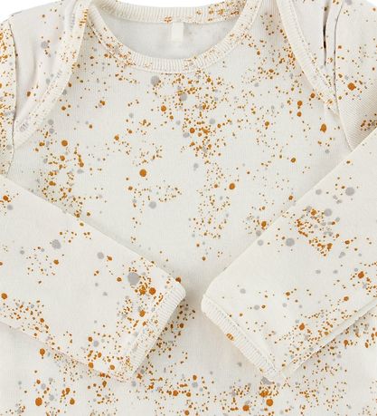 Délicieux justaucorps Soft Gallery en crème avec un imprimé complet de points jaune curry et gris.