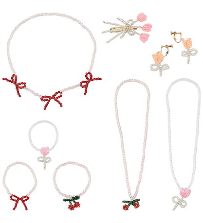 Le Boîte à bijoux contient une paire de boucles d'oreilles, une boucle, trois bracelets et trois colliers, qui sont élastiques et donc faciles à mettre et à enlever pour les plus petits.