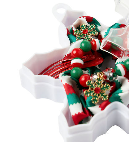 L' ensemble Name It est livré dans une boîte en forme de flocons de neige et contient un scrunchie, deux boucles rouges, un bracelet et une ring, qui créent ensemble un look doux et ludique.
