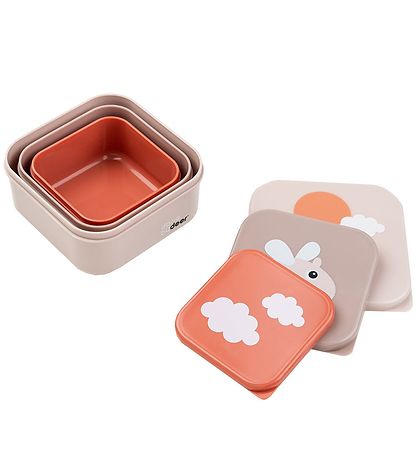 Les Done by Deer peuvent être rangées les unes dans les autres afin de prendre le moins de place possible. Les boîtes à collations sont approuvées pour les aliments.