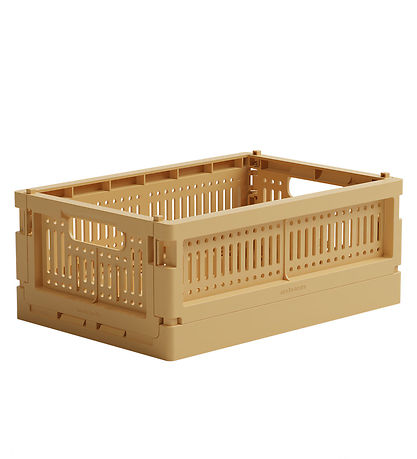 La Made Crate s'assemble en cliquant tous les coins ensemble, et elle se plie à nouveau facilement. La boîte pliante peut être utilisée pour rangement par ex. créations, vêtements, bibelots, jouets, produits de soins et/ou autre chose. Aux deux extrémités se trouvent des poignées pratiques et la boîte pliante peut être empilée avec plusieurs de la même taille.