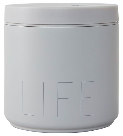 boîte à repas thermos au Design Letters gris avec le texte «Life» écrit en gris foncé. Une petit fourchette est incluse.
