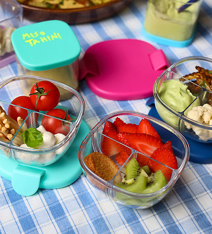 Le bol à snacks Yumbox présente une forme tour et un couvercle Fast qui s'ouvre grâce à deux clips. L'intérieur est divisé en trois Rum individuels hermétiques. Le bol à snacks Yumbox présente un design fonctionnel avec des fermetures sécurisées et un intérieur spacieux et transparent, idéal pour rangement vos snacks et sauces.