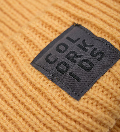 Joli bonnet cool Color Kids jaune de couleur unie avec un patch logo sur le devant.