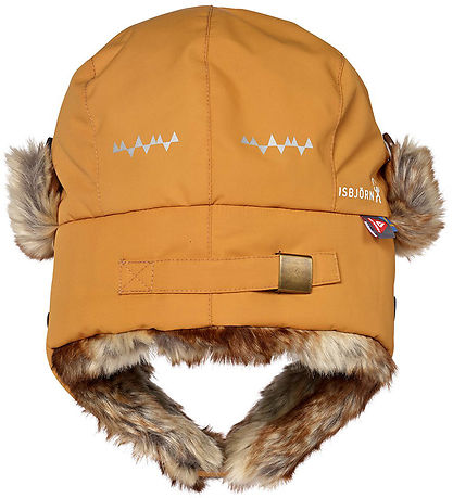 Joli joli bonnet ISBJÖRN OF SWEDEN en jaune avec imprimé logo et imprimé réfléchissant élégant.
