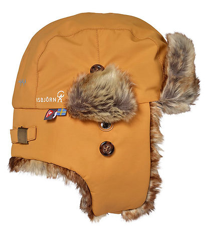 Le bonnet ISBJÖRN OF SWEDEN a une forme de tête tour et présente un design smart avec des rabats qui se ferment sous le menton. Au sommet de l'ouverture du visage se trouve un abat-jour plié fixe, et les rabats et l'abat-jour fixe ainsi que le bonnet sont en belle faux cuir fourrure. Au niveau des oreilles se trouve un trou d'aération pratique qui peut être fermé par un rabat en faux cuir fourrure fermé par un bouton. Au niveau du cou, la coupe du chapeau peut être ajustée grâce à une sangle à boucle.