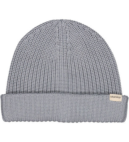 bonnet MarMar frais dans une couleur gris-bleu smart avec un tricot côtelé qui ajoute un look smart. Le Bonnet est facile à coiffer et possède un petit logo MarMar discret ornant le bord. Un choix élégant pour les enfants et les parents.