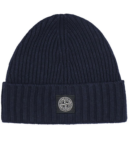Magnifique bonnet Stone Island en bleu marine de couleur unie en qualité tricotée dans un mélange de laine chaude.