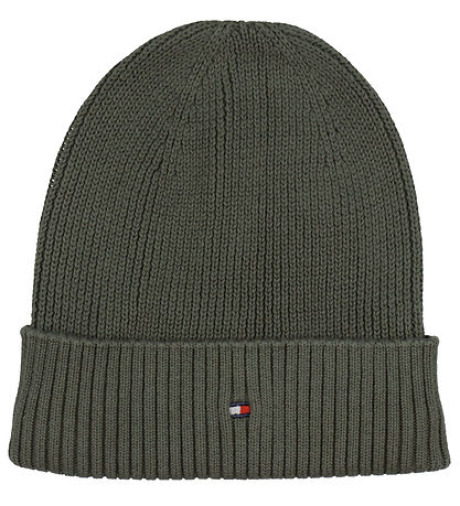 Élégant bonnet Tommy Hilfiger d'un vert cendré. Il est tricoté en fines côtes et présente un bord replié. Sur le devant, le logo emblématique Tommy Hilfiger au centre apporte une bonnet classique.