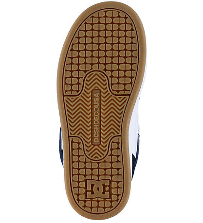 Les bottes DC sont un modèle bas avec une ouverture oblique fermée par des lacets blancs pratiques. L'intérieur est doublé en textile et doté d'une semelle intérieure amovible. La semelle extérieure en caoutchouc blanc, ornée d'un motif marron clair sous la semelle, assure un bon maintien.