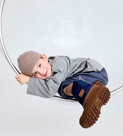 Bottes d'hiver élégantes de Bisgaard, avec semelle en caoutchouc marron et dessus en textile bleu foncé. Bottes d'hiver sont ornées de détails en cuir marron.