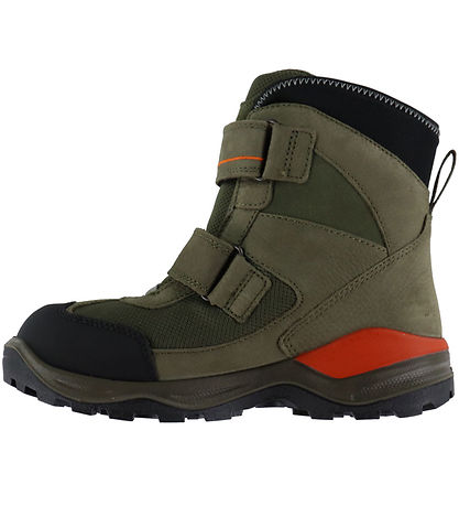 Les bottes d'hiver Ecco se ferment grâce à deux sangles Velcro, ce qui les rend faciles et rapides à ajuster. Le haut de la tige est doté d'un tissu extensible qui assure un maintien optimal, même en mouvement. Le bas est doté d'un contrefort de talon offrant un bon maintien. L'intérieur est doublé d'une fausse fourrure faux cuir et la semelle intérieure est amovible.
