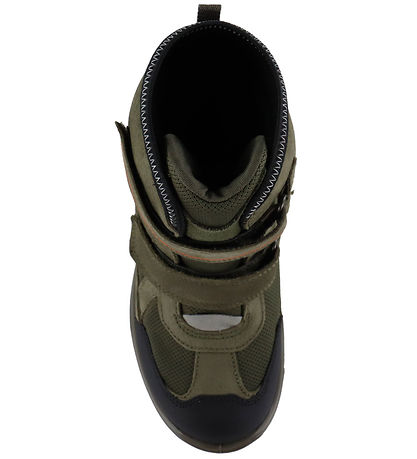 Bottes d'hiver élégantes Ecco en daim vert foncé et textile et avec détails réfléchissants.