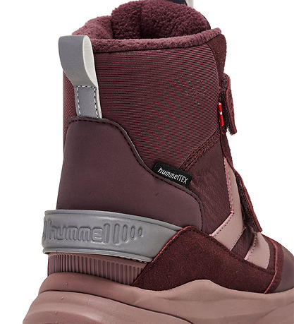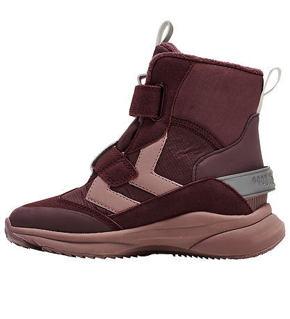 Les bottes d'hiver Hummel sont un modèle haut qui monte au dessus des chevilles, et elles se resserrent grâce à des brides velcro. Les Bottes d'hiver sont doublées de textile et sur le dessus se trouve une polaire douce. Les Bottes d'hiver ont des semelles intérieures amovibles et les semelles extérieures sont violet cendré et fabriquées en EVA léger avec un dessous en caoutchouc qui offre un bon maintien.