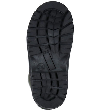 Jolies bottes d'hiver Mikk-Line en caoutchouc noir et textile rose et vert foncé avec détails en marron.