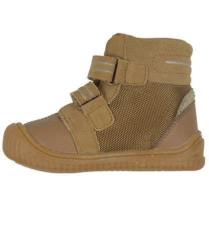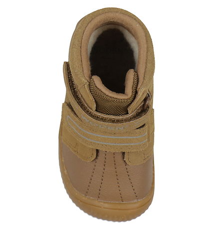 Les bottes d'hiver Woden sont un modèle mi-haut, se fermant par deux brides Velcro robustes. Bottes sont doublées de fausse fourrure faux cuir à l'intérieur. La semelle intérieure est amovible et en liège souple. La semelle extérieure noire, avec un motif sous la semelle, assure un bon maintien.