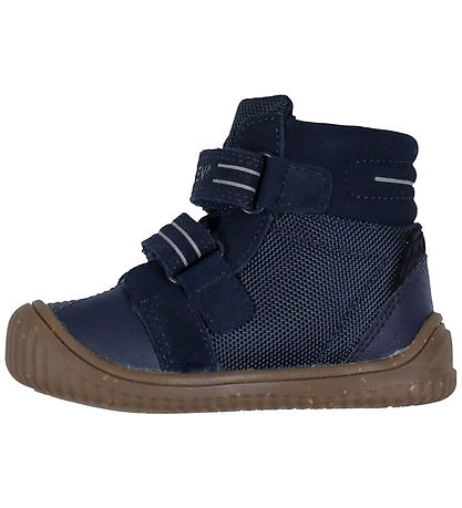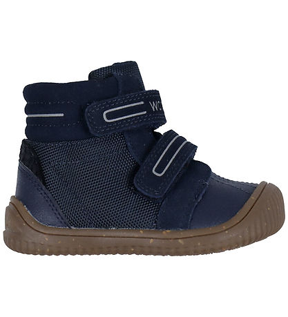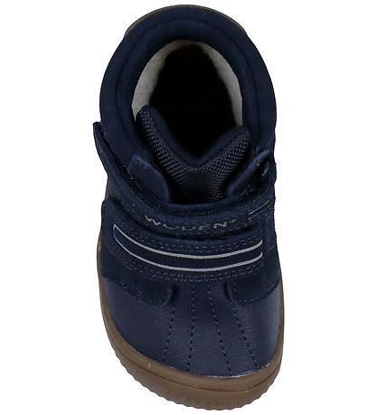 Belles bottes d'hiver Woden en cuir bleu foncé, daim et textile.