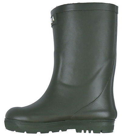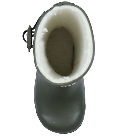 Les bottes en caoutchouc Aigle ont une manche de longueur standard avec une boucle à l'extérieur. L'intérieur est blanc, faux cuir laine, et les semelles intérieures sont amovibles. Bottes en caoutchouc sont dotées d'une semelle extérieure souple avec un motif de feuilles rugueux sous la semelle.