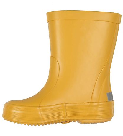 Jolies bottes en caoutchouc CeLaVi jaune moutarde avec un logo CeLaVi sur le dessus de l'extérieur et une bande réfléchissante au talon.
