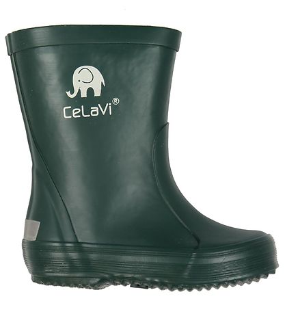 Bottes intelligentes en caoutchouc CeLaVi de couleur vert foncé avec un logo CeLaVi sur le dessus de l'extérieur et une bande réfléchissante au talon.