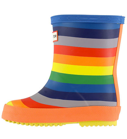 Bottes en caoutchouc Hunter colorées en mat avec toutes les couleurs de l'arc-en-ciel et avec un logo sur le devant de la tige
