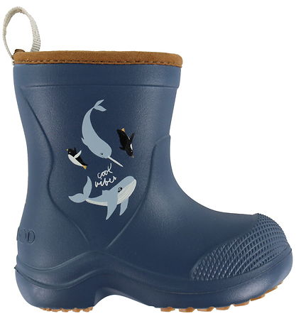 Belles bottes en caoutchouc Liewood bleues avec un joli imprimé de divers animaux de l'Arctique.