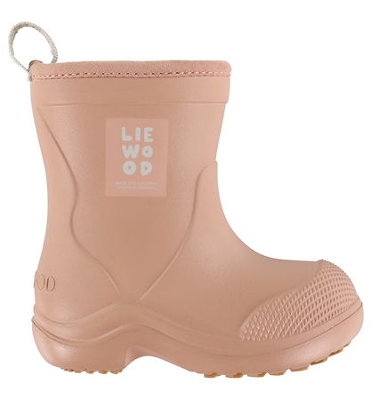 Jolies bottes en caoutchouc Liewood en rose avec un logo imprimé à l'extérieur.
