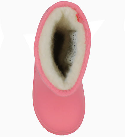 Belles bottes thermiques En Fant de couleur rose de couleur unie avec un petit logo réfléchissant à l'extérieur.