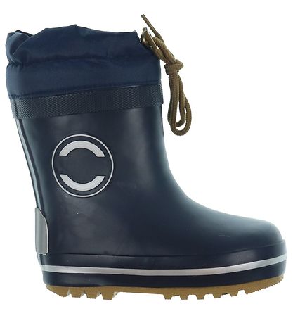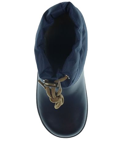 Magnifiques bottes thermiques Mikk-Line bleu marine avec lacets marron clair. La semelle extérieure est ornée d'un bord réfléchissant tout autour, le talon d'un réflecteur et la tige d'un logo réfléchissant.
