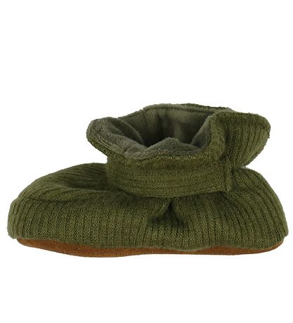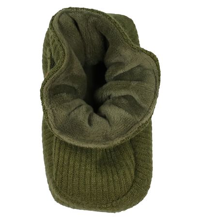 chaussons Smarte En Fant de vert militaire en qualité polyester tricoté avec un joli motif côtelé.