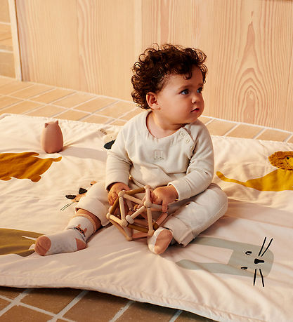 La balle motorisée Liewood est fabriquée en bois naturel et en silicone flexible. Il est idéal à la fois comme jouet de développement et comme hochet avec les petits anneaux lâches. Il est facile à tenir pour les petites mains, mais il est aussi amusant et sensuel.