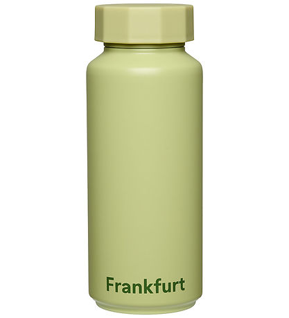 bouteille thermos Nice Design Letters en vert avec le texte "Francfort" au fond de la bouteille.