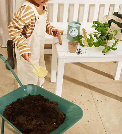La Kids Concept est amusante avec laquelle les enfants peuvent jouer. qu'ils aident dans le jardin ou qu'ils doivent déplacer leurs jouets. La brouette permet de développer la force et la capacité d'équilibre de l'enfant.