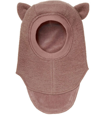 Ravissante cagoule Huttelihut en polaire chaude, d'un rose cendré. Huttelihut présente une forme tour avec de petites oreilles et se compose de deux épaisseurs pour une chaleur optimale. Cagoule bord côtelé assure un bon maintien.